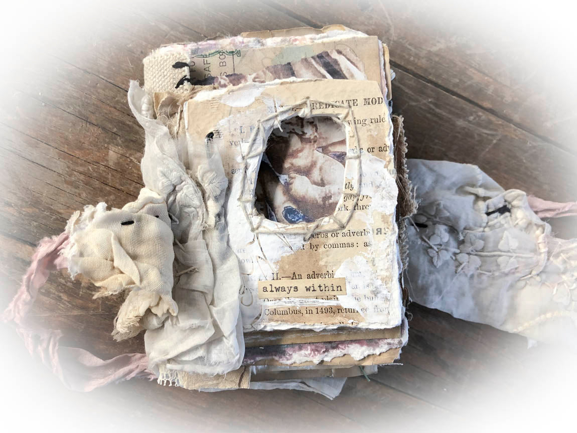 Want to create a piece of art, that draws the viewer in and has them wanting more? Then this is the class for you! Not only is this a small beauty of a book, but what a gem that radiates, intrigues and pulls the viewer in and has them wanting to investigate your book further. There is something precious and magical about holding something within the palms of your hands.